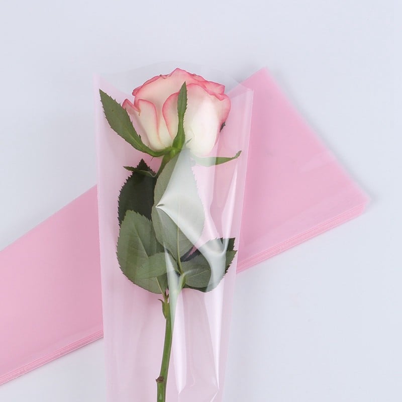 التعبئة / ربطة (50 حبة)المقاس / 45 سمالصنع/ الصينوصف/ تغليف بلاستيكي حامل للورد باللون الوردي, يستخدم لتقديم توزيعات الورد