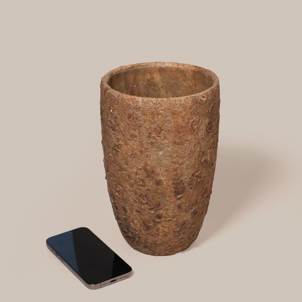 - وصف/فازة مصنوعة من السيراميك باللون البني أنيقة وتصميم بسيط تجتمع بين البساطة والجمال لتناسب مختلف المساحات
